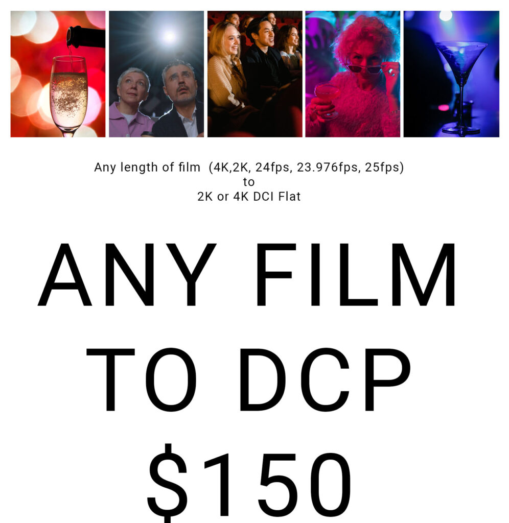 A Digital Cinema Package (DCP) is the globally recognized standardfor the digital distribution and projection of movies across the world. Guarnateed to Pass Projection QC!By keeping choices simple, we keep prices affordable.Quality service without the unnecessary extras. GET THE DEAL!